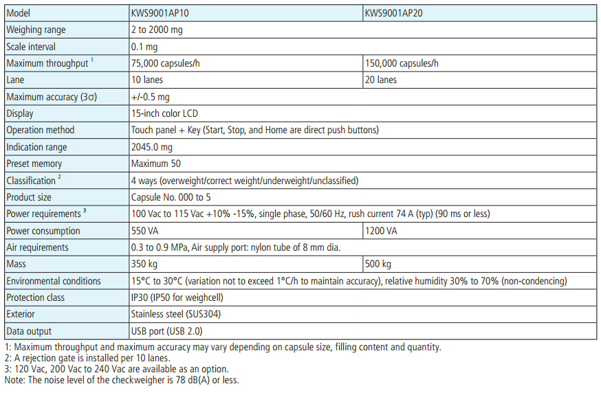 Anritsu Capsule Checkweigher is applied for the exhaustive weighing test of highly active capsules, which is able to check 23 million capsules per hour in the industry’s highest weight accuracy of ±0.5 milligram. 3 rejection gates of the machine remove overweight、underweight and defective products and 1 gate remain accepted products. Moreover, the follow-up validation can be carried out.