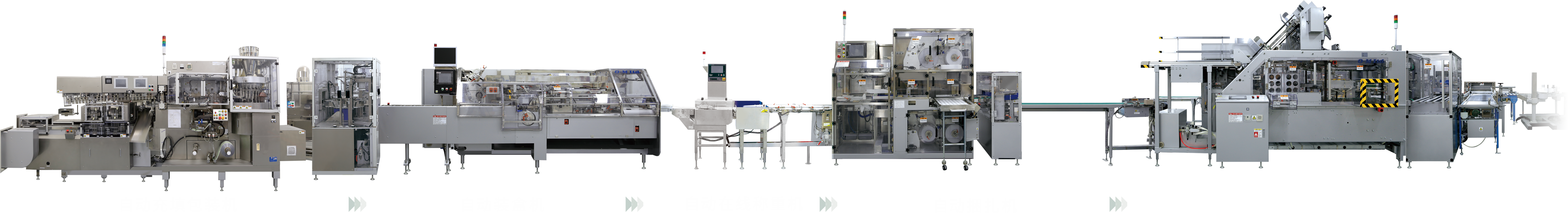 TOPACK超高速三邊封/四邊封制袋充填包裝機 TOPACK超高速三邊封制袋充填包裝機采用旋轉式方式在水平方向制袋、充填、封口,可實現(xiàn)每分鐘200~800包的超高速充填包裝,是凝聚了TOPACK四十五年經(jīng)驗和專有技術的最高級機型。憑借經(jīng)過長時間熱處理的牢固封口和較長的充填時間,滿足多種材料的包裝需求。 而且,通過組合收集裝置,可以與紙盒包裝機、橫向枕式包裝機、捆扎機、供袋式包裝機等